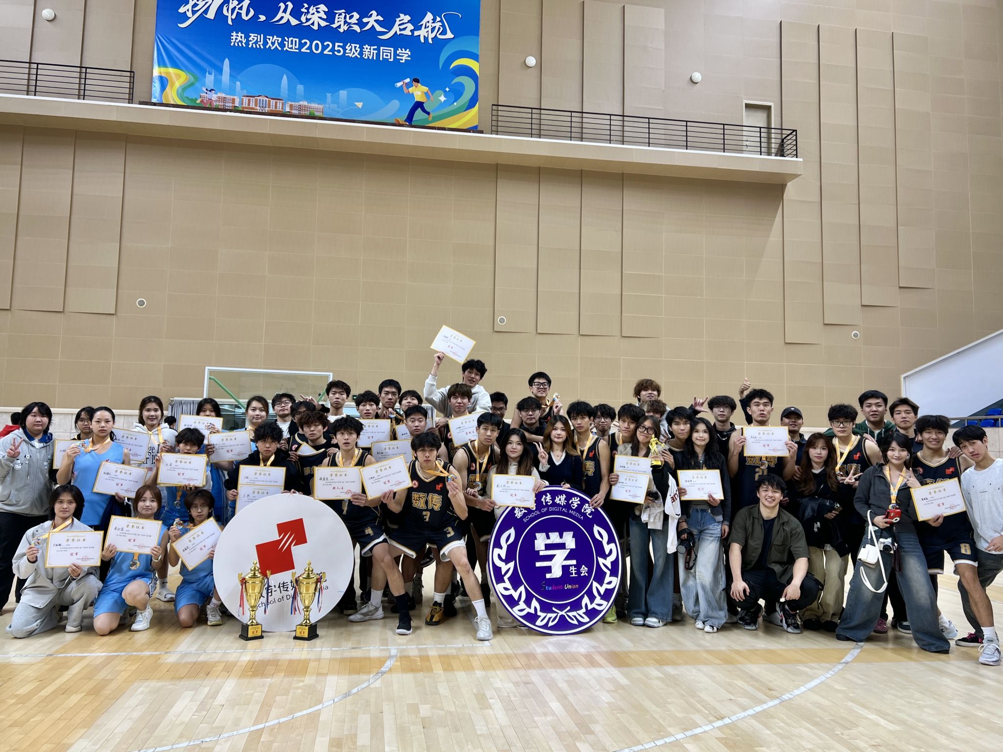 在11月28日晚于西丽湖园区体育馆举行的“飞跃杯”篮球总决赛中,数传学院男篮与女篮发挥出色、奋勇拼搏,最终双双摘得桂冠,展现出卓越的团队实力...