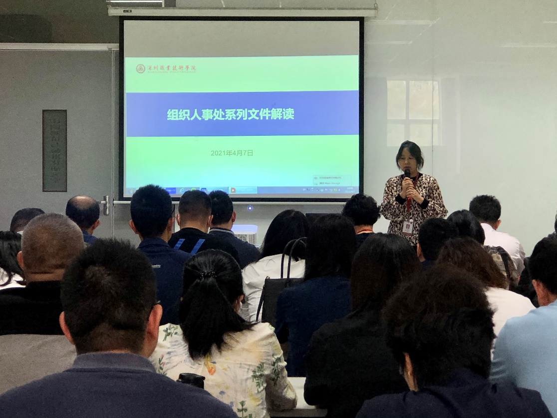 为贯彻理解和执行学校人事政策,更好地为教职工服务,4月7日,传播学院特邀组织人事处副处长粟卫梅就学校人事制度系列文件进行解读分享,会议由院长何颂华主持,全院教职工出席参加。会上,粟卫梅围绕组织人事处系列文件制定的出发点、系列文件及结构、评聘考、人才引进与发展等四个方面进行了详细解读,使老师们对我校人事制度系列文件相关内容有了更为系统的了解和认识,也为接下来的聘期考核做好充足准备。文件精神解读后,粟卫梅还对老师们提出的关于聘期考核问题进行现场答疑,得到了与会老师的一致好评。