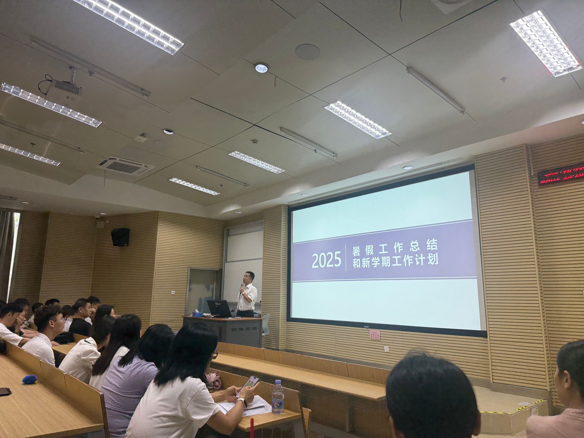 9月5日,数字传媒学院在德业楼206教室召开新学期全院教职工大会,总结暑期工作成果并部署新学期重点工作任务,学院全体教职工参会。