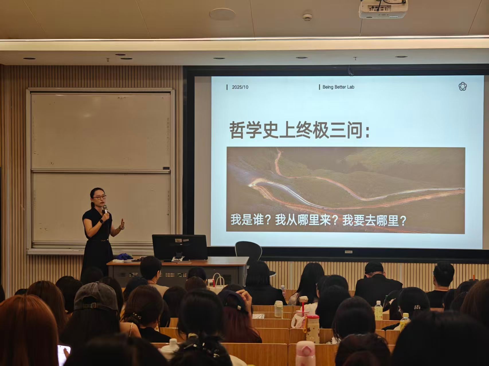 在随后的校友分享环节,我校2014届优秀校友轩东玲带来专题分享。她从广告策展人起步,逐步拓展至实业领域,并最终创立“玥来玥好”创意同盟企业,业务涵盖内容营销、兴趣电商、旅游新零售等多个方向。作为喜马拉雅生活方式与旅游文创品牌的创始人,轩东玲拥有十余年文化IP操盘经验,曾参与日本teamLab艺术展等多个知名艺术项目的策划与运营。她结合自身从学生到创业者的成长经历,为学弟学妹们分享了行业最新动态与职业发展心得。