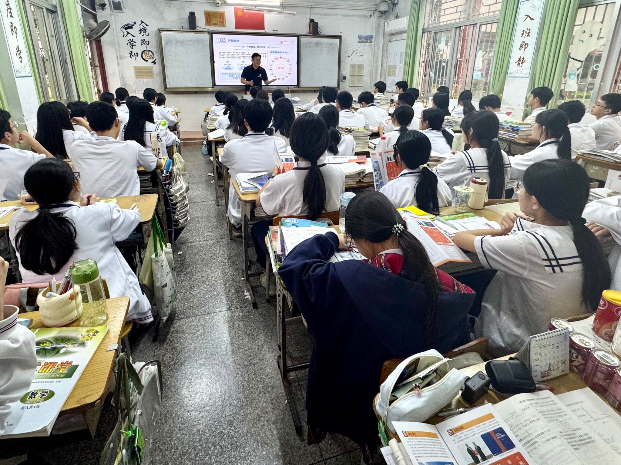 工作组先后走访了潮阳中英文学校、潮师高级中学、启声国际、金堡中学、潮阳黄图盛、潮阳一中等六所学校。在各校组织的座谈会及宣讲会上,工作组围绕六大核心板块,全面且系统地介绍了学校师资队伍建设情况、产教融合实践成果、创新型人才培养模式、特色产业学院建设进展,以及招生就业工作的突出亮点和学生资助政策等内容,全方位展示了学校的综合实力与鲜明办学特色。