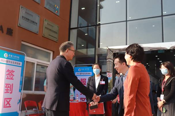 图1:董朝君莅临招聘现场,了解此次双选会的参加企业情况、毕业学生情况
