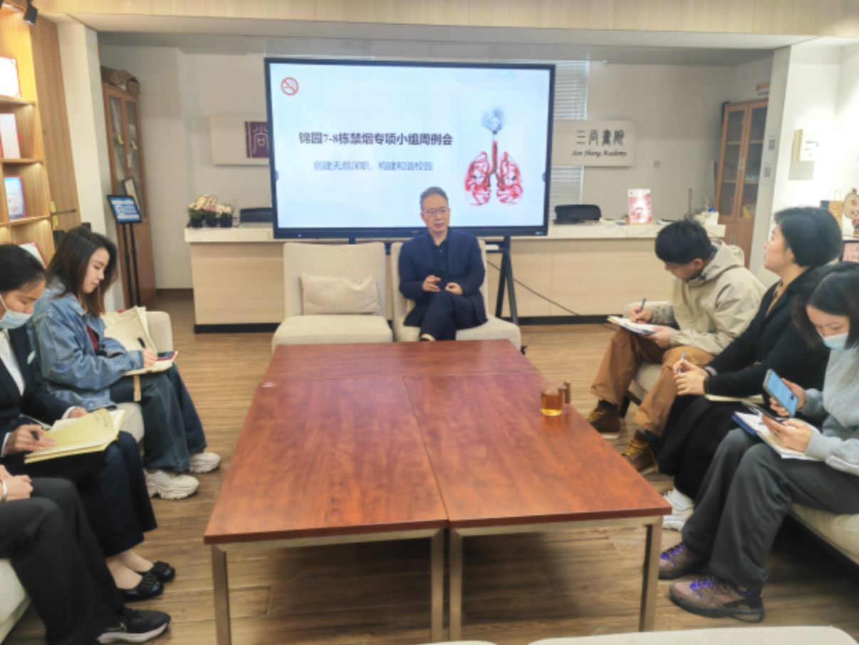 3月21日上午,锦园7-8栋禁烟专项小组会议在三尚书院召开,副校长董朝君,传播学院党委副书记刘星宇,学工办主任李美娜,公寓办主管毕文方,传播学院、数创学院辅导员代表、心理中心教师余思慧、7-8栋生活老师出席会议。