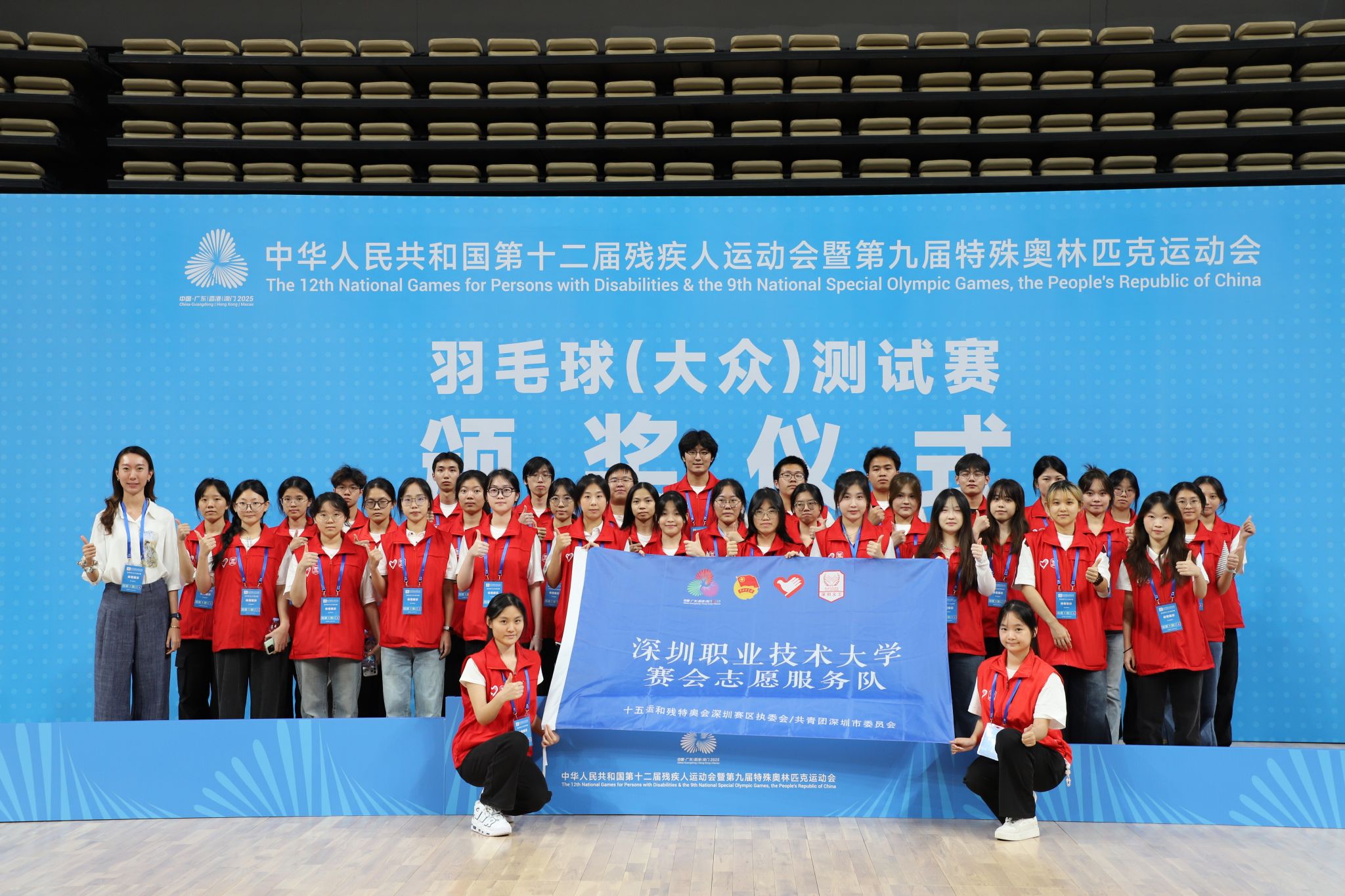 9月30日下午,在福田赛区委员会的指导下,全国第十二届残疾人运动会暨第九届特殊奥林匹克运动会羽毛球(大众)测试赛在深圳市体育中心顺利收官。数传学院派出的36名志愿者凭借精准的岗位配置与专业的服务,为赛事提供了坚实保障。