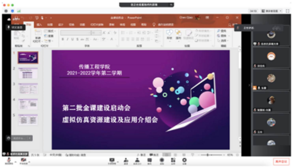 根据学校2022年第二批“金课”建设立项情况,结合疫情防控和工作实际,3月9日下午,传播学院线上召开了2022年第二批“金课”建设启动会议,全体一线专任教师参加了此次会议,会议由副院长陈桥主持。本次会议的主要议程包括“金课”建设标准(含验收指标)解读、第一批“金课”负责人经验分享、课程资源委托采购准备和邀请智慧树数字制作公司讲解一些虚拟仿真资源等内容。