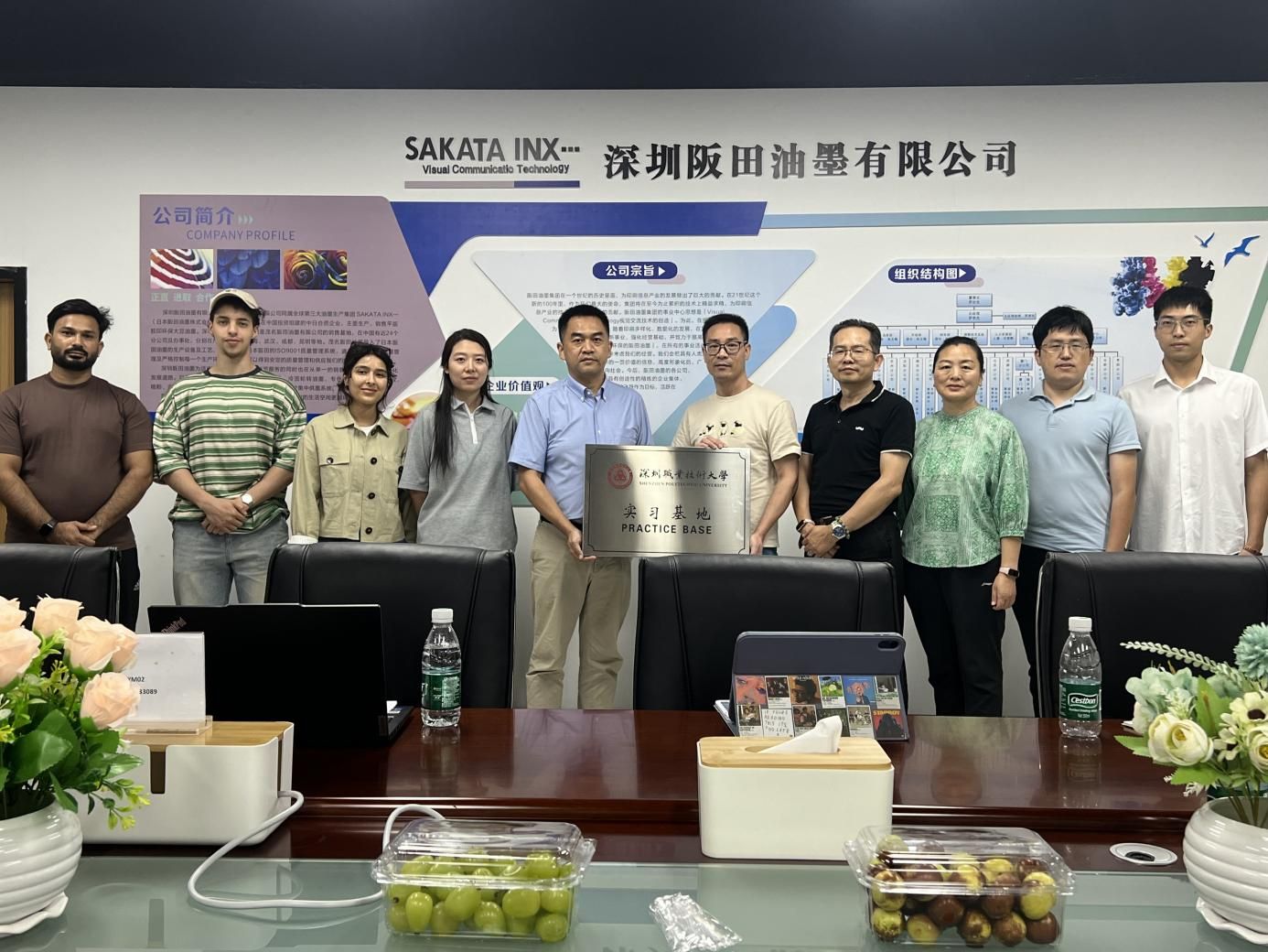 近日,学校传播学院数字图文信息处理专业主任许向阳及专任教师高媛、招刚、殷震、张志城一行前往深圳阪田油墨有限公司参观交流,受到公司董事长罗世友、总经理罗理恒和董事长助理李成的热情接待。此次访问旨在探讨校企合作事宜,并举行实习基地的揭牌仪式。