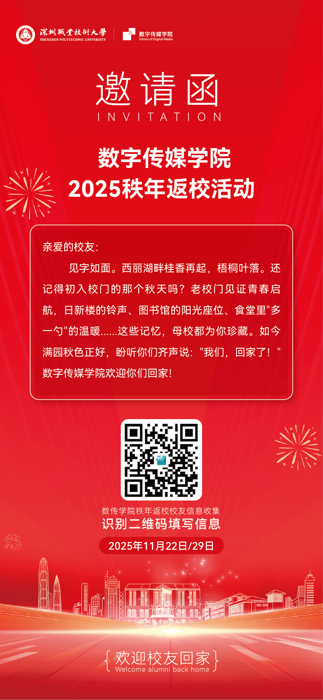 见字如面。西丽湖畔桂香再起,梧桐叶落。还记得初入校门的那个秋天吗?老校门见证青春启航,日新楼的铃声、图书馆的阳光座位、食堂里"多一勺"的温暖..这些记忆,母校都为你珍藏。如今满园秋色正好,盼听你们齐声说:"我们,回家了!数字传媒学院欢迎你们回家!