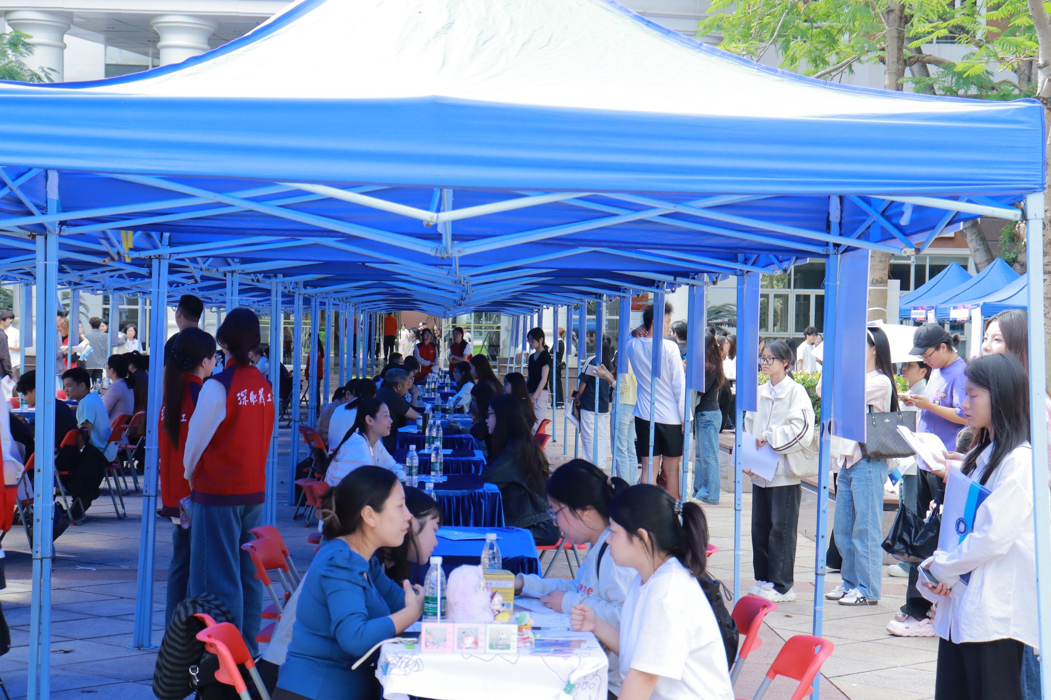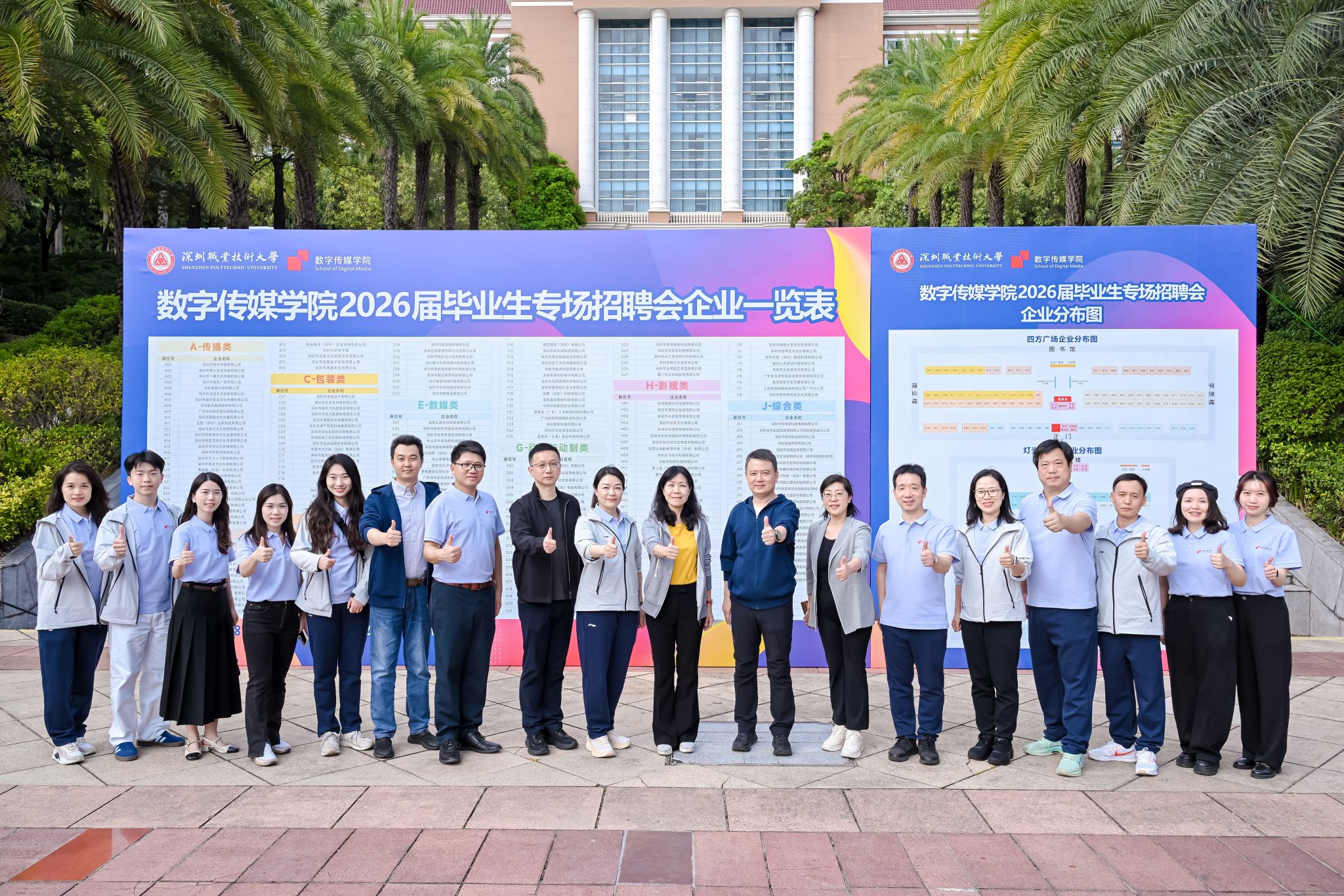 为深入推进毕业生就业工作,促进人才供需高效对接,11月12日下午,数字传媒学院在留仙洞园区四方广场及灯光篮球场成功举办了2026届毕业生专场招聘会。学校党委副书记、纪委书记何莉,党委委员、组织部部长黄川川,招生就业办公室主任崔莲,以及学院全体领导班子、专业主任、专任教师、辅导员与全体毕业生共同参加了本次活动。