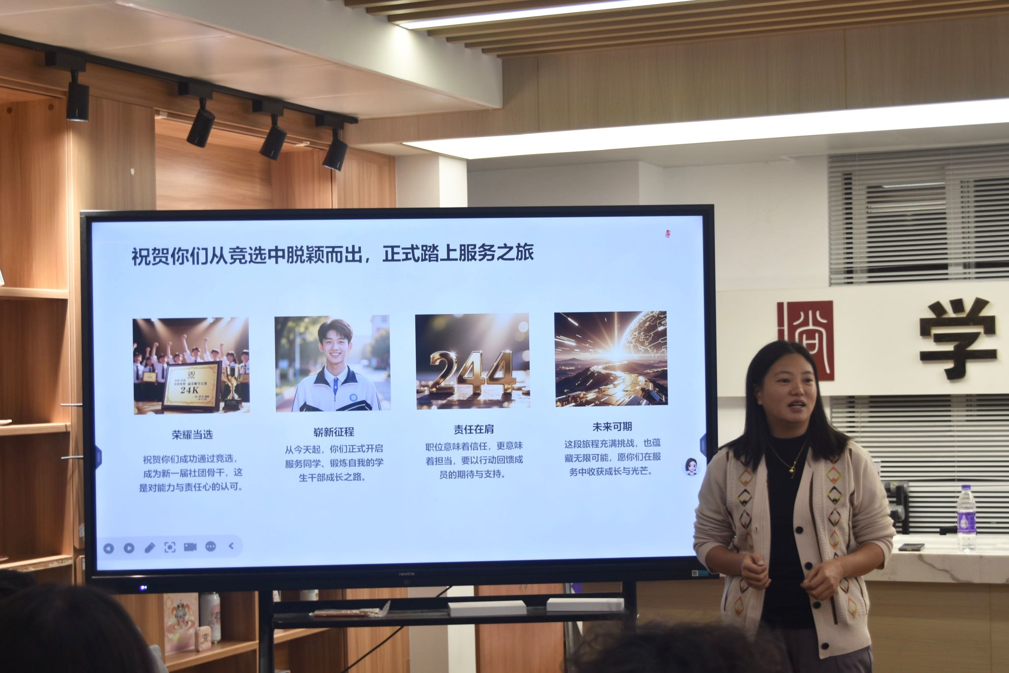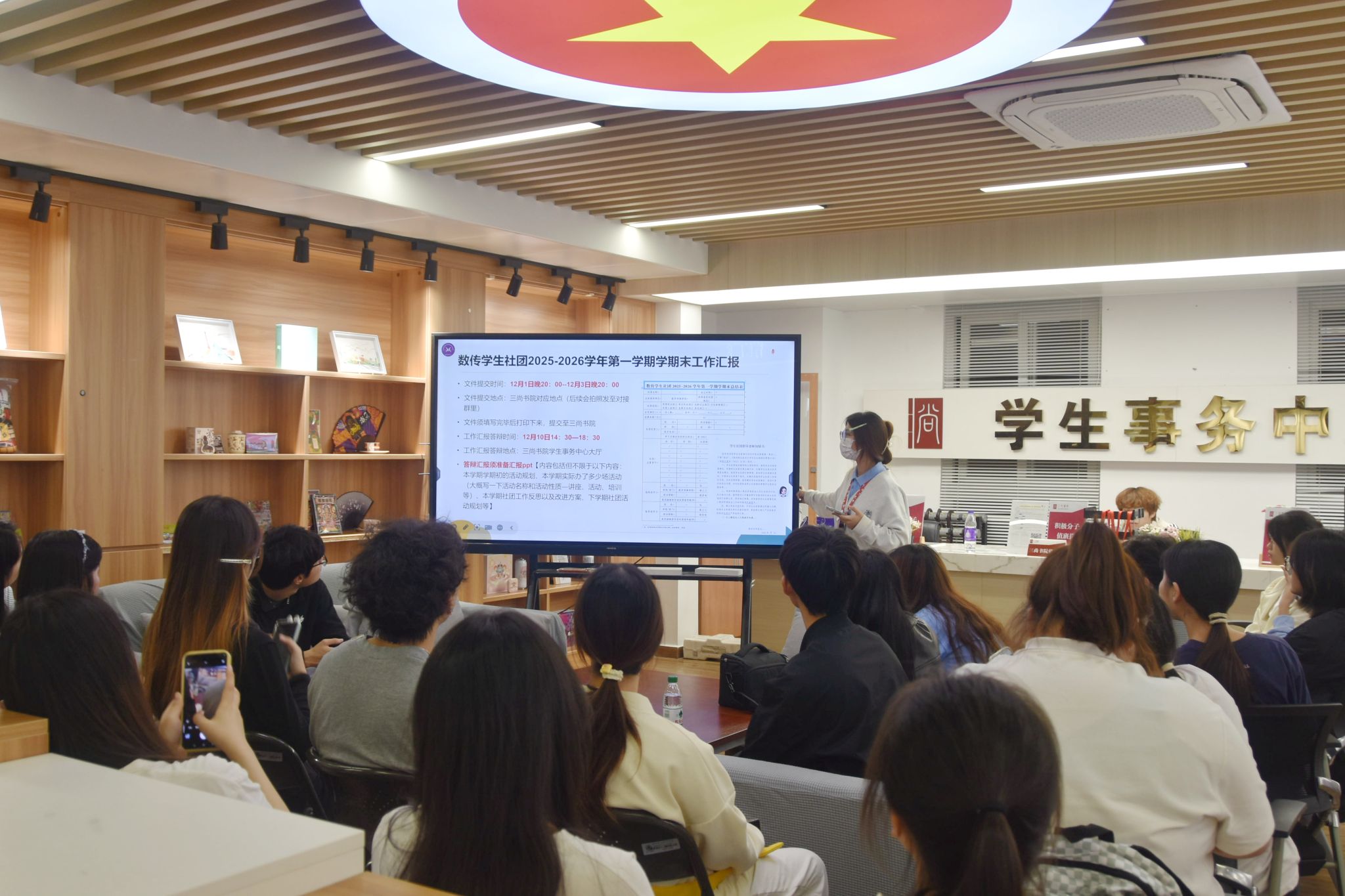会议伊始,曾丹伟老师带领全体社团干部学习二十届四中全会精神,强调社团工作的时代责任。随后聚焦三项实务培训:一是制度规范,细化活动与经费管理流程;二是规划执行,强化工作闭环与提质增效;三是协同创新,凝聚师生合力培育活动品牌。